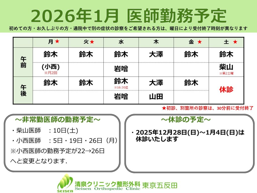 【東京 五反田】1月の医師勤務予定